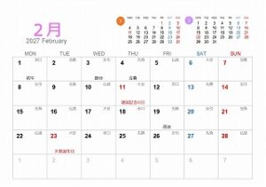 • 2027年の暦