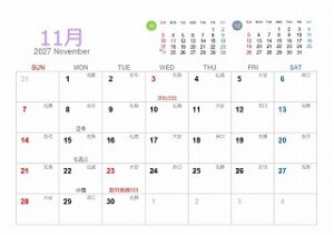 • 2027年の暦